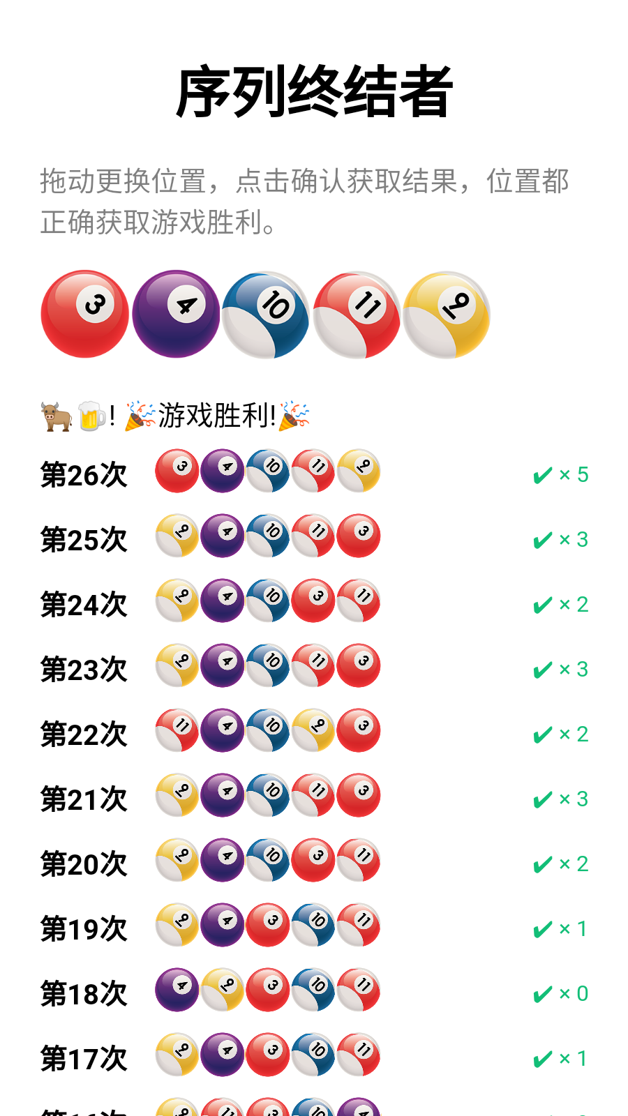 号码进行前后挪动 ,直到台球的序列
